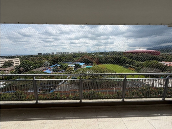 El apartamento cuenta con un área construida de 104 m² y una distribución funcional que privilegia la iluminación natural y la ventilación. Distribuidos en: Sala - comedor amplia, cocina lineal integral con barra, campana y horno, zona de lavado, baño social, estudio amplio. La zona privada está conformada por 3 habitaciones con clóset, la principal amplian y con baño privado, baño completo, ofrece Balcón lineal grande con vista panorámica. Pisos laminados en madera, techos en PVC y placa, y se complementa con parqueadero doble privado y cubierto.